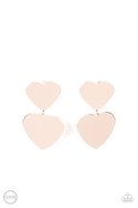 Featuring a shimmery scratched finish, an oversized rose gold heart charm swings from the bottom of a smaller rose gold heart charm, resulting in a flirtatious lure. Earring attaches to a standard clip-on fitting.