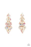 Featuring white and iridescent finishes, trestles of round, marquise, and emerald cut rhinestones cluster into three sparkly segments as they link into a jaw-dropping lure. Earring attaches to a standard post fitting. Due to its prismatic palette, color may vary.