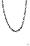 Textured gunmetal links are joined together with sleek gunmetal fittings across the chest, creating an ornate chain. Features an adjustable clasp closure.