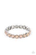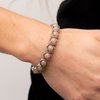 Textured silver petals fold around dewy brown beads along stretchy bands, resulting in a flowery pop of color around the wrist.