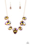 Featuring a stellar iridescence, an oversized collection of glittery iridescent teardrop gems alternates upside down and right-side-up below the collar for an out-of-this-world sparkle. Features an adjustable clasp closure. Due to its prismatic palette, color may vary.