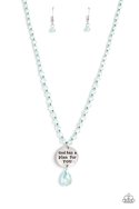 Infused along an invisible wire, silver studs and reflective light blue, faceted beads glide down the chest in a shimmery style. Hanging from the bottom of the beads and studs, a hammered silver disc is stamped with the phrase "God has a plan for YOU" with a reflective, blue faceted teardrop bead adding additional swing to the divine design. Features an adjustable clasp closure.