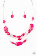 Infused with dainty metallic accents, a collection of faceted pink and sparkling crystal-like beads are threaded along invisible wires below the collar for a whimsically layered look. Features an adjustable clasp closure.