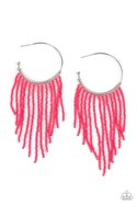 Strands of dainty pink seed beads stream out from the bottom of a classic silver hoop, resulting in a flirtatiously tasseled look. Earring attaches to a standard post fitting. Hoop measures approximately 1 1/2" in diameter.