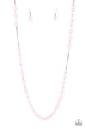 Enchanting sections of asymmetrical pink pearls and glassy Pale Rosette teardrop beads alternate along an elegantly extended silver chain, creating a refined pop of color across the chest. Features an adjustable clasp closure.