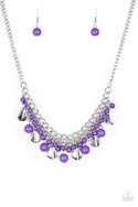 Vivacious purple beads and curved silver teardrops swing from the bottom of interlocking silver chains, creating a flirtatious fringe below the collar. Features an adjustable clasp closure.