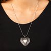 Embossed in whimsical flowers and vines, a rustic silver heart frame is adorned with a white stone heart center for an adoring artisan finish as it glides along a rounded silver snake chain across the chest. Features an adjustable clasp closure.